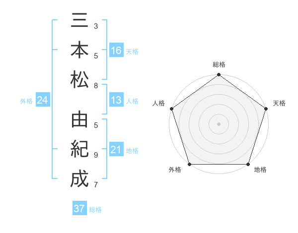 三本松 由紀成さんを姓名の画数から五運を鑑定