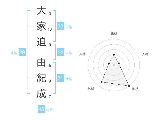 大家迫 由紀成さんの総格は43画の2点