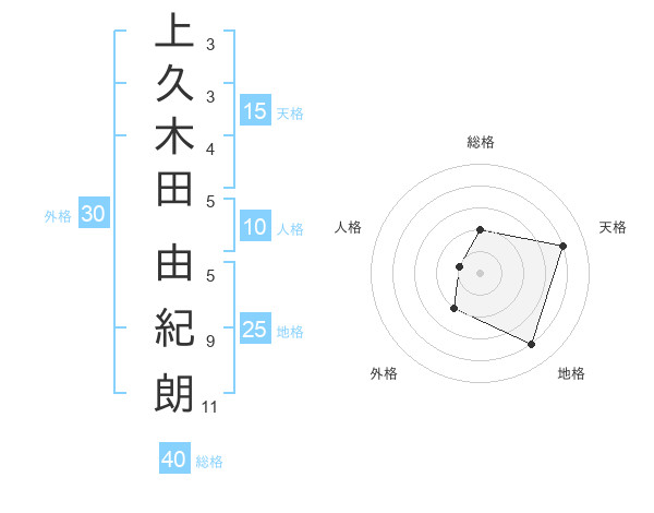 上久木田 由紀朗さんを姓名の画数から五運を鑑定