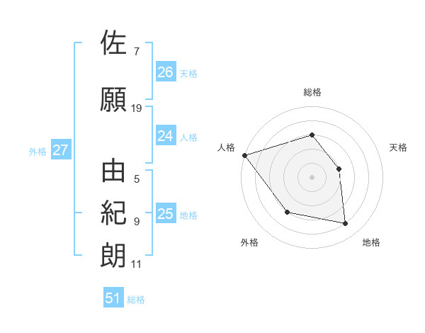 佐願 由紀朗さんの総格は51画の3点!