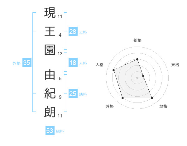現王園 由紀朗さんの外格は35画の4点!