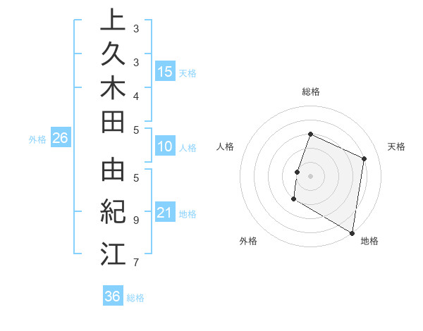 上久木田 由紀江さんを姓名の画数から五運を鑑定