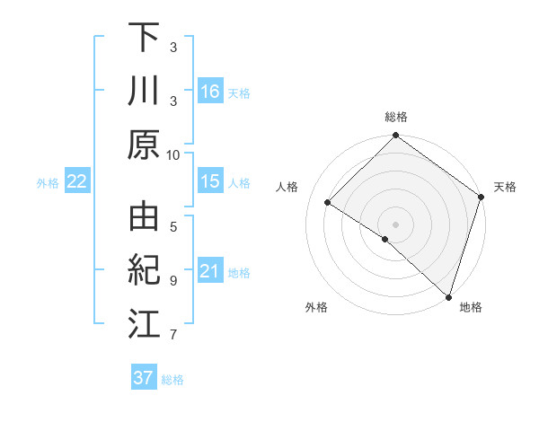下川原 由紀江さんの総格は37画の5点!