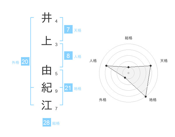 井上 由紀江さんの総格は28画の1点!