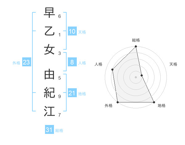 早乙女 由紀江さんを姓名の画数から五運を鑑定