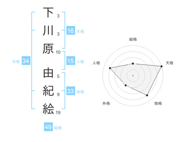 下川原 由紀絵さんを姓名の画数から五運を鑑定