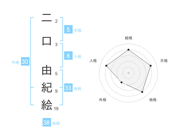 二口 由紀絵さんの天格は5画の4点!