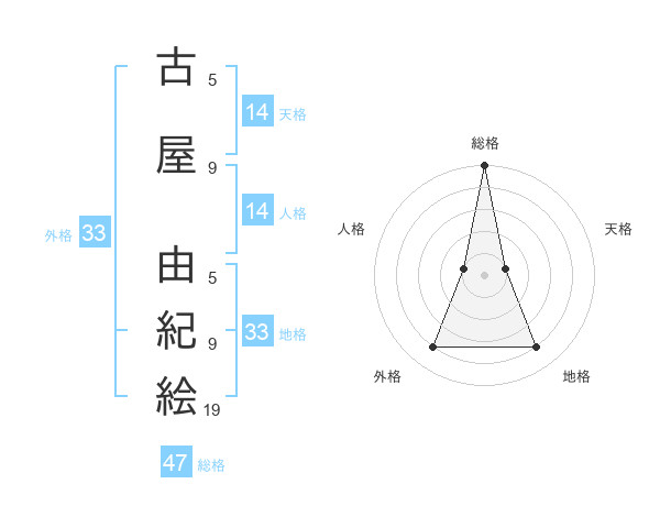 古屋 由紀絵さんを姓名の画数から五運を鑑定