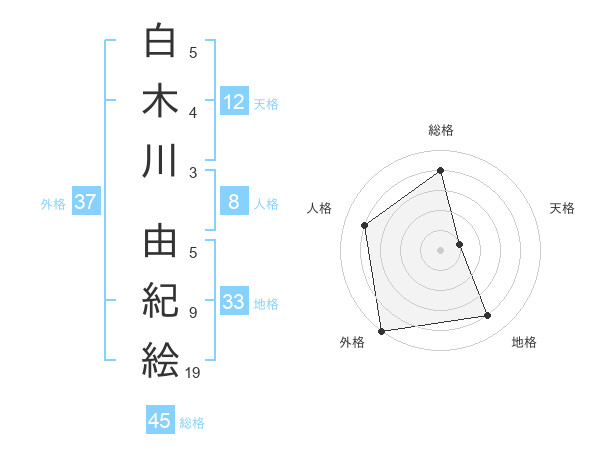白木川 由紀絵さんを姓名の画数から五運を鑑定