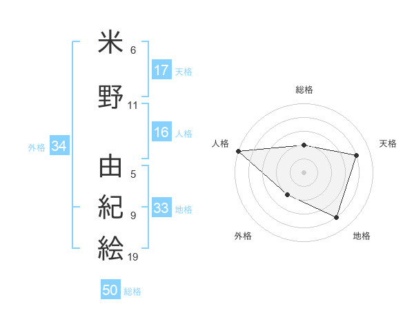 米野 由紀絵さんを姓名の画数から五運を鑑定