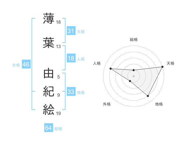 薄葉 由紀絵さんを姓名の画数から五運を鑑定