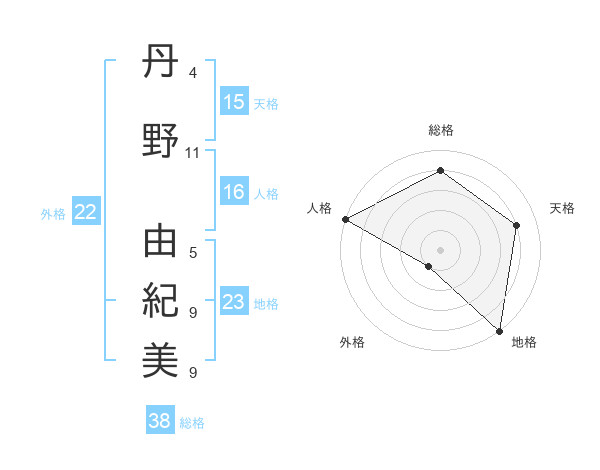 丹野 由紀美さんを姓名の画数から五運を鑑定