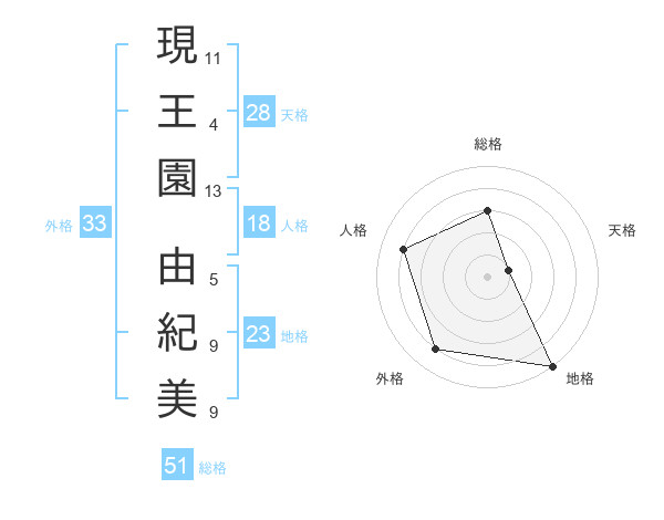 現王園 由紀美さんの総格は51画の3点!