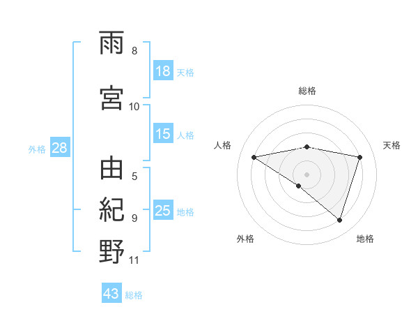 雨宮 由紀野さんを姓名の画数から五運を鑑定
