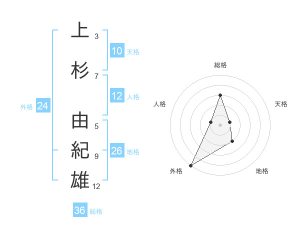 上杉 由紀雄さんを姓名の画数から五運を鑑定