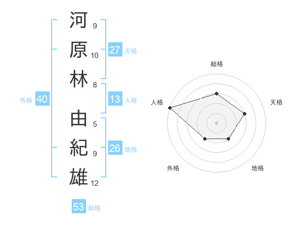 河原林 由紀雄さんの総格は53画の3点!