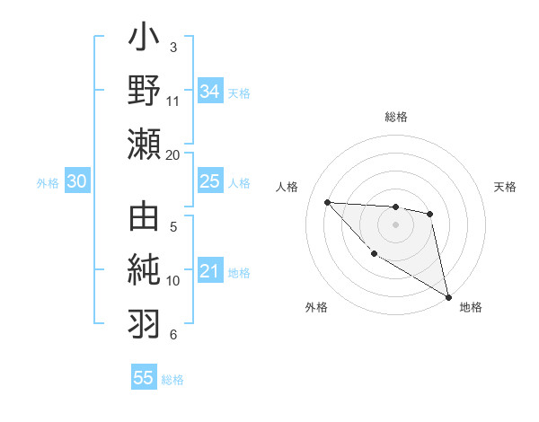 小野瀬 由純羽さんを姓名の画数から五運を鑑定