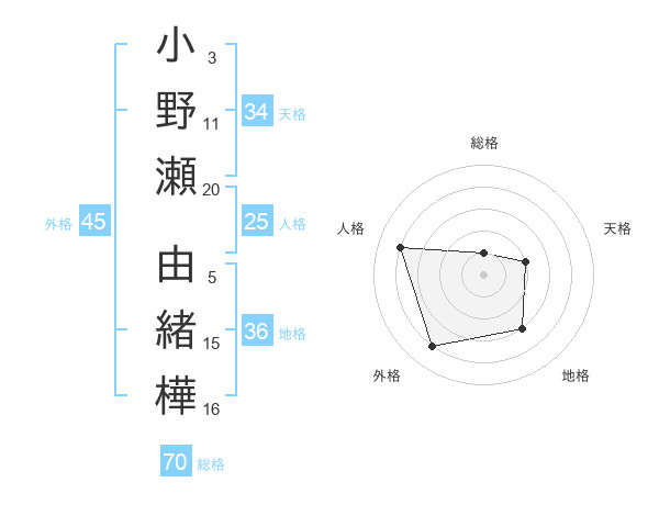 小野瀬 由緒樺さんの総格は70画の1点