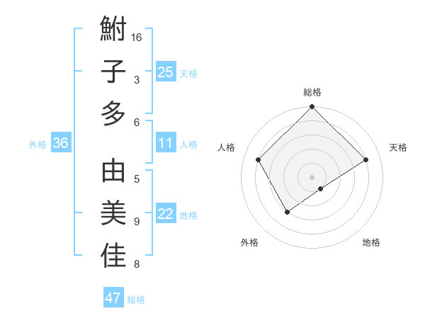 鮒子多 由美佳さんの総格は47画の5点!
