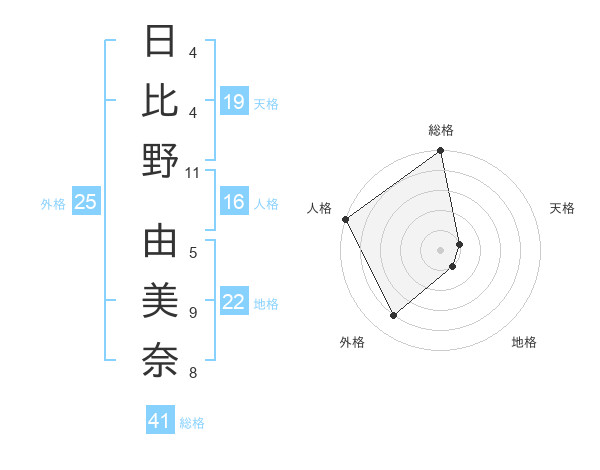 日比野 由美奈さんを姓名の画数から五運を鑑定