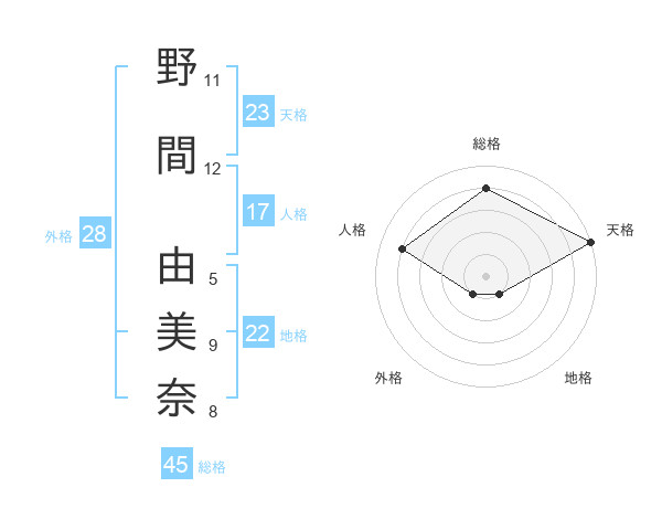 野間 由美奈さんの総格は45画の4点!