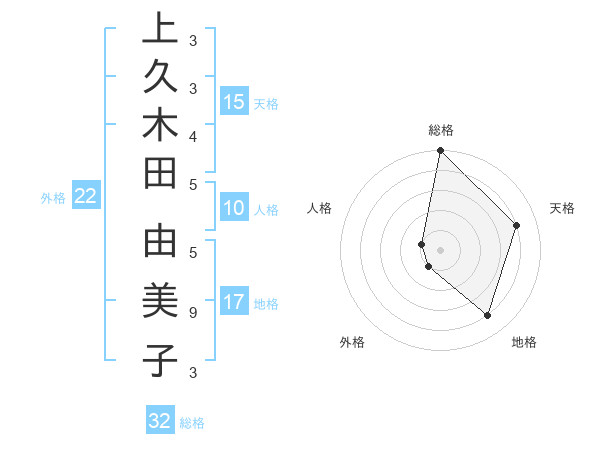 上久木田 由美子さんを姓名の画数から五運を鑑定