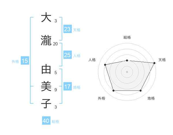 大瀧 由美子さんを姓名の画数から五運を鑑定
