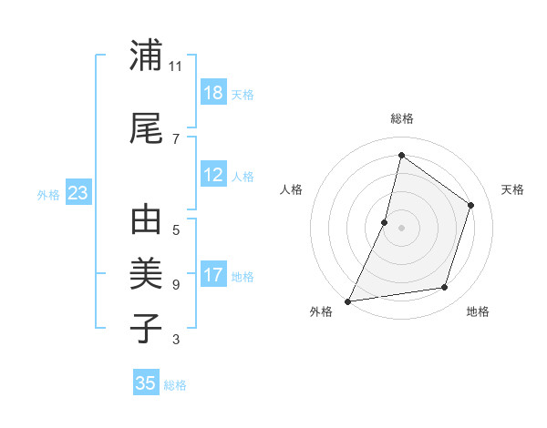 浦尾 由美子さんの総格は35画の4点!