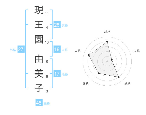 現王園 由美子さんを姓名の画数から五運を鑑定