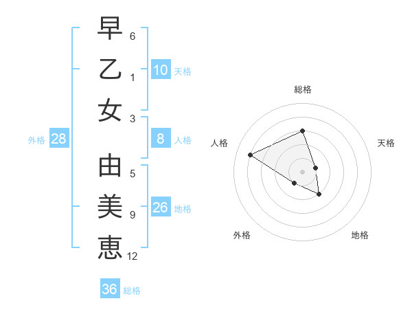 早乙女 由美恵さんの天格は10画の1点!