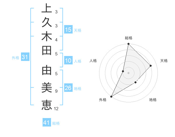上久木田 由美恵さんを姓名の画数から五運を鑑定