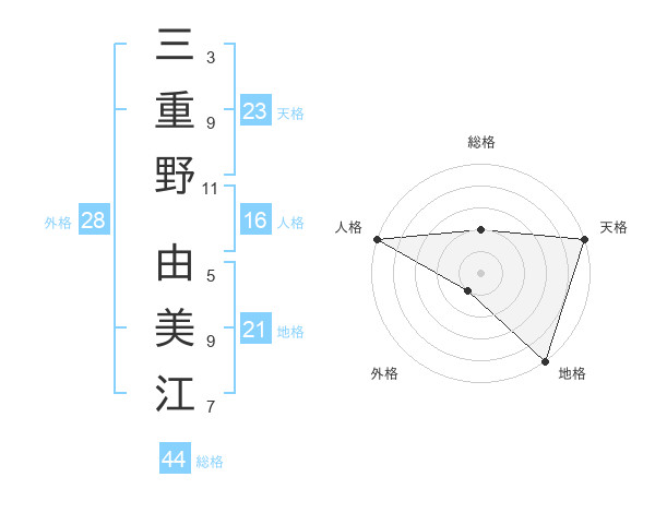 三重野 由美江さんの天格は23画の5点!