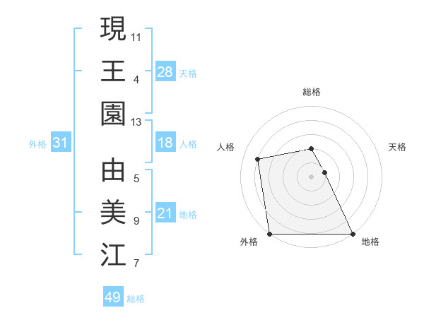 現王園 由美江さんを姓名の画数から五運を鑑定