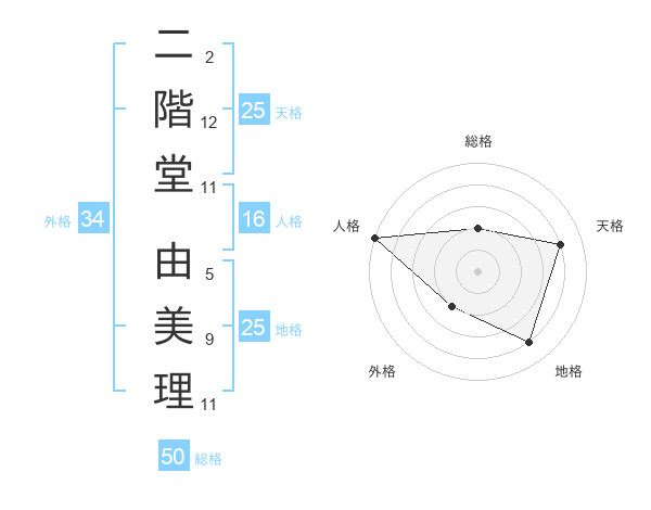 二階堂 由美理さんを姓名の画数から五運を鑑定