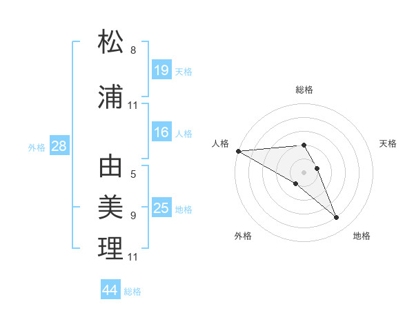 松浦 由美理さんを姓名の画数から五運を鑑定