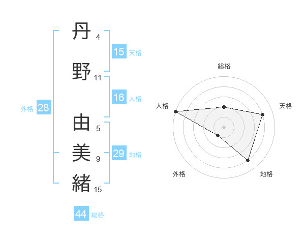 丹野 由美緒さんの総格は44画の2点!
