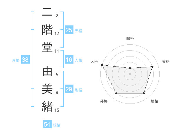 二階堂 由美緒さんの外格は38画の4点!