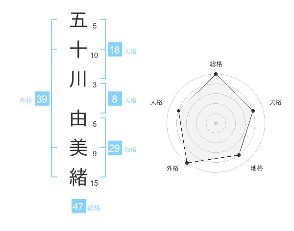 五十川 由美緒さんを姓名の画数から五運を鑑定