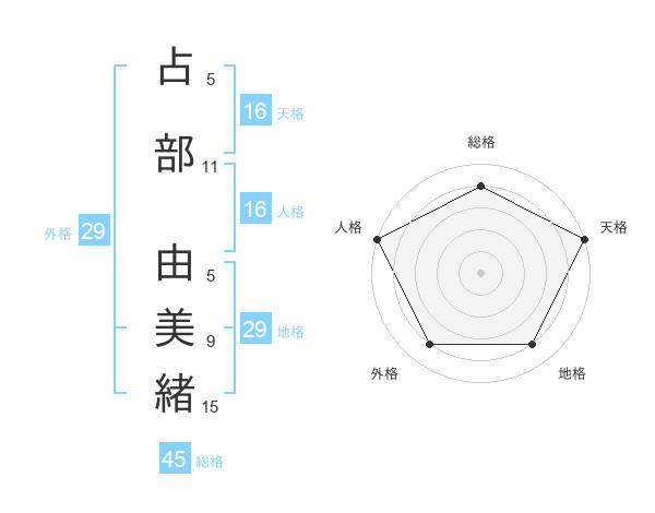 占部 由美緒さんを姓名の画数から五運を鑑定