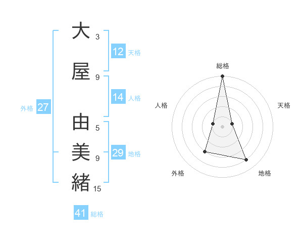 大屋 由美緒さんを姓名の画数から五運を鑑定