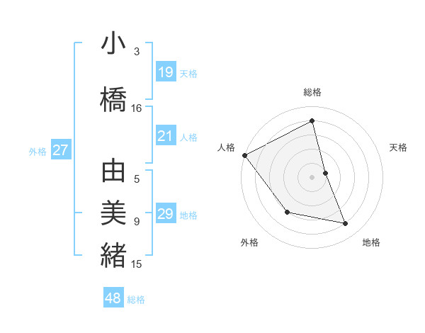 小橋 由美緒さんを姓名の画数から五運を鑑定