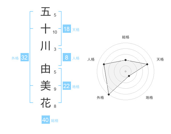 五十川 由美花さんを姓名の画数から五運を鑑定