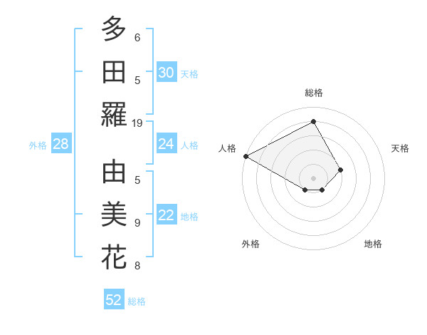 多田羅 由美花さんの総格は52画の4点!