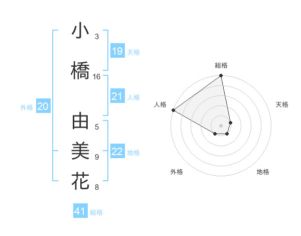 小橋 由美花さんを姓名の画数から五運を鑑定
