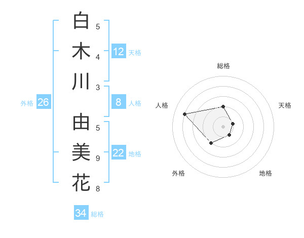 白木川 由美花さんを姓名の画数から五運を鑑定