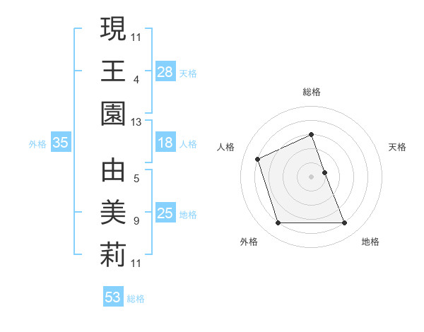 現王園 由美莉さんを姓名の画数から五運を鑑定