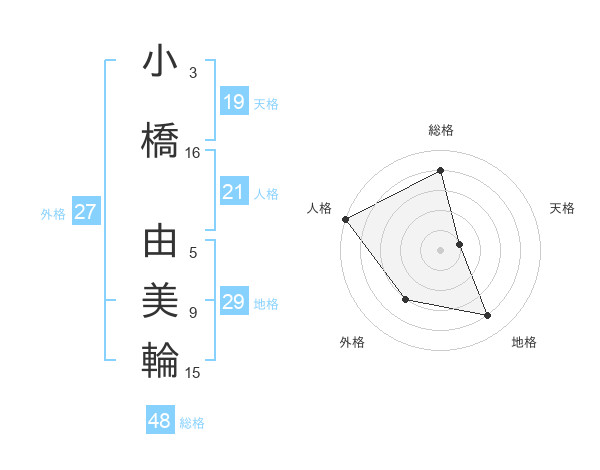 小橋 由美輪さんの総格は48画の4点!