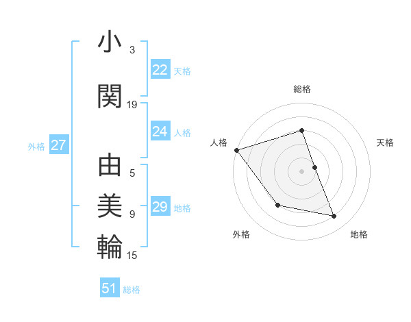 小関 由美輪さんの総格は51画の3点!