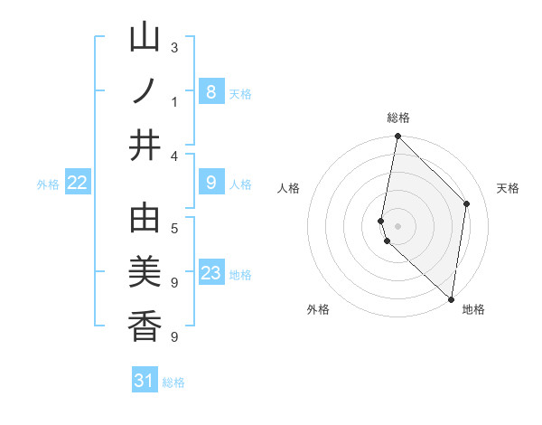 山ノ井 由美香さんの総格は31画の5点!