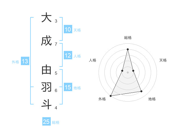 大成 由羽斗さんを姓名の画数から五運を鑑定